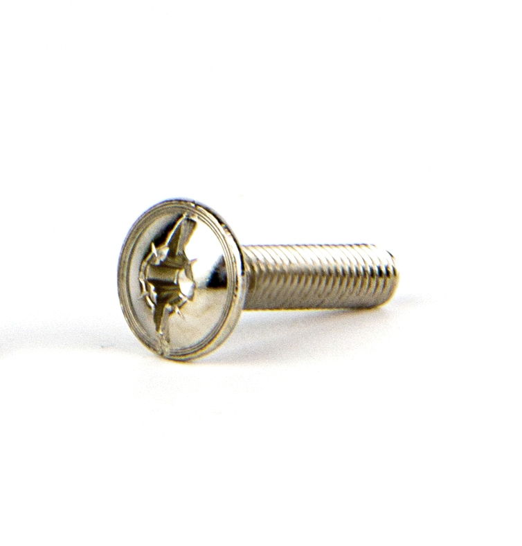Винт крепежный для ручек, М4x18, полукруглая головка c пресс-шайбой, Pz2, резьба полная, никель (SF01/М4*18/03/Ni)