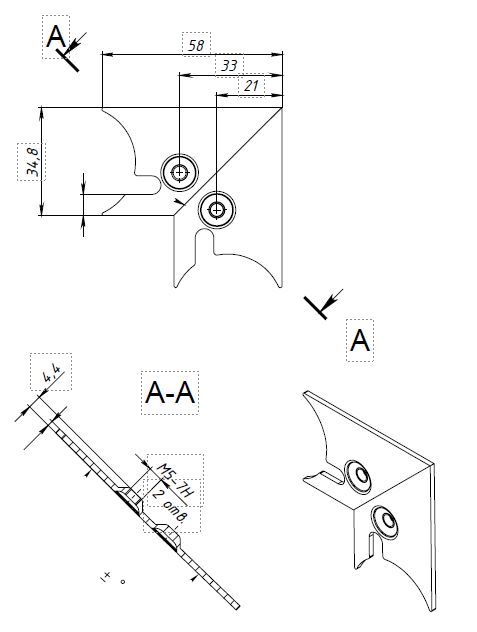 Угол для широких рамочных профилей 45x20 мм (UG02/2)